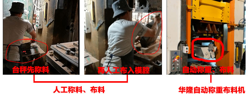 目前在不少耐材企業(yè)內看到的還是采用人工布料的。先用搓斗裝料,然后用臺秤稱,有誤差的話,再手動去增減料。